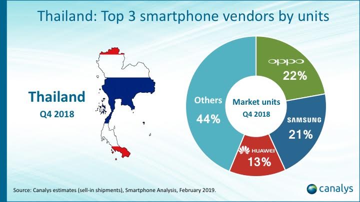 และล่าสุดกับยอดขายที่ยอดเยี่ยม ประจำไตรมาสที่ 4 ปี 2561 ที่ผ่านมา OPPO ประสบความสำเร็จ ขึ้นแท่นตลาดสมาร์ทโฟนไทยเป็นอันดับที่ 1! (ข้อมูลโดย บริษัทวิจัยตลาด Canalys)