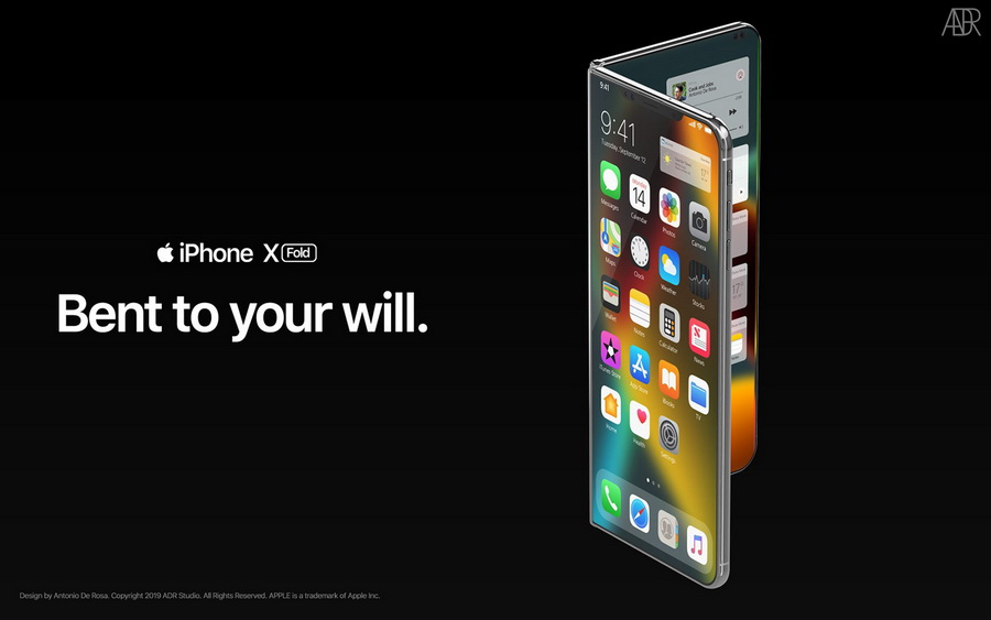 Antonio De Rosa เป็นหนึ่งในดีไซน์เนอร์ที่สร้างคอนเซ็ปต์ iPhone พับได้ออกมาได้อย่างสวยงามสมจริง โดยยังคงพื้นฐานการออกแบบในสไตล์ iPhone X จึงเรียกผลงานของตัวเองว่า iPhone X Fold มากับจอแสดงผล Super Retina ขนาด 8.3 นิ้ว (514 ppi) และมีจอแสดงผลด้านนอก ขนาด 6.6 นิ้ว