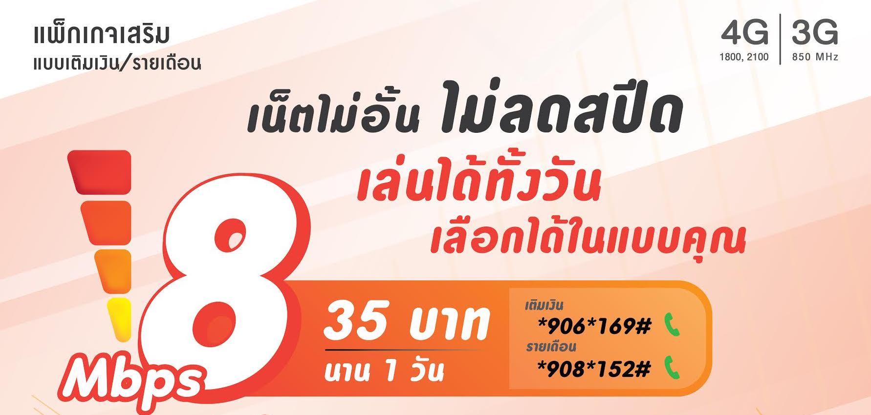 my by CAT บริการโทรศัพท์มือถือและอินเทอร์เน็ต 4G และ 3G จากบริษัท กสท โทรคมนาคม จำกัด (มหาชน) ตอกย้ำกระแสตอบรับแพ็กเกจ “เน็ตไม่อั้น” เจาะกลุ่มคนรุ่นใหม่สายโซเชียลให้เล่นอินเทอร์เน็ตไม่อั้น ทั้งวัน ไม่ลดสปีด ด้วยการต่ออายุแพ็กเกจเสริมให้สมัครใช้งานกันได้ยาวๆ โดยมีสปีดความเร็ว แรง ให้เลือกใช้ตามต้องการตั้งแต่ 1 Mbps ในราคาเริ่มต้นเพียงวันละ 19 บาท, 4 Mbps ราคา 25 บาทต่อวัน, 6 Mbps ราคา 29 บาทต่อวัน และโปรโมชั่นสุดคุ้มกับความเร็ว 8 Mbps ในราคาเพียง 35 บาทต่อวัน นอกจากนี้ ยังสามารถเลือกได้ทั้งแบบรายสัปดาห์ รายเดือน และเหมาจ่าย 6 เดือนอีกด้วย