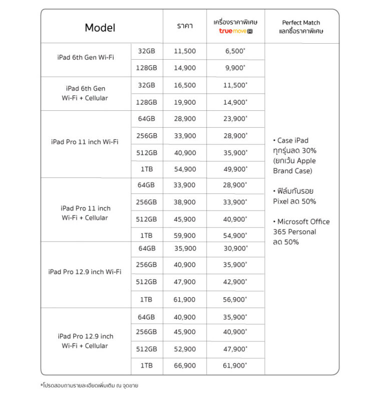 • iPad 6th Gen Wi-Fi 32GB เพียง 6,500 บาท*