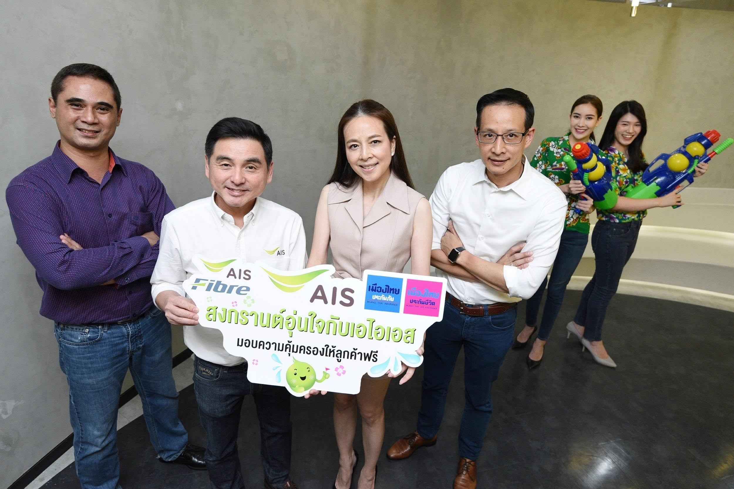 เวียนมาอีกครั้ง สำหรับเทศกาลคลายร้อนที่หลายคนรอคอยกับ “เทศกาลสงกรานต์” ประเพณีไทยที่ดังไกลไปทั่วโลก โดยในปีนี้ AIS เพิ่มความพิเศษมากยิ่งขึ้น ด้วยการมอบความห่วงใยให้ทั้งลูกค้ามือถือและลูกค้าเน็ตบ้าน กับแคมเปญ “สงกรานต์อุ่นใจกับเอไอเอส” โดยจับมือร่วมกับ บมจ.เมืองไทยประกันชีวิต โดย นายสาระ ล่ำซำ กรรมการผู้จัดการและประธานเจ้าหน้าที่บริหาร และ บมจ.เมืองไทยประกันภัยโดย นางนวลพรรณ ล่ำซำ กรรมการผู้จัดการและประธานเจ้าหน้าที่บริหาร มอบกรมธรรม์ประกันภัยอุบัติเหตุฟรีให้ลูกค้ามือถือ และกรมธรรม์ประกันอัคคีภัยสำหรับบ้านอยู่อาศัยฟรีให้ลูกค้า AIS Fibre  เป็นครั้งแรกของธุรกิจอินเทอร์เน็ตบ้านของไทย ตอกย้ำการดูแลลูกค้าครบทุกช่วงเวลาสำคัญของชีวิตอย่างแท้จริง