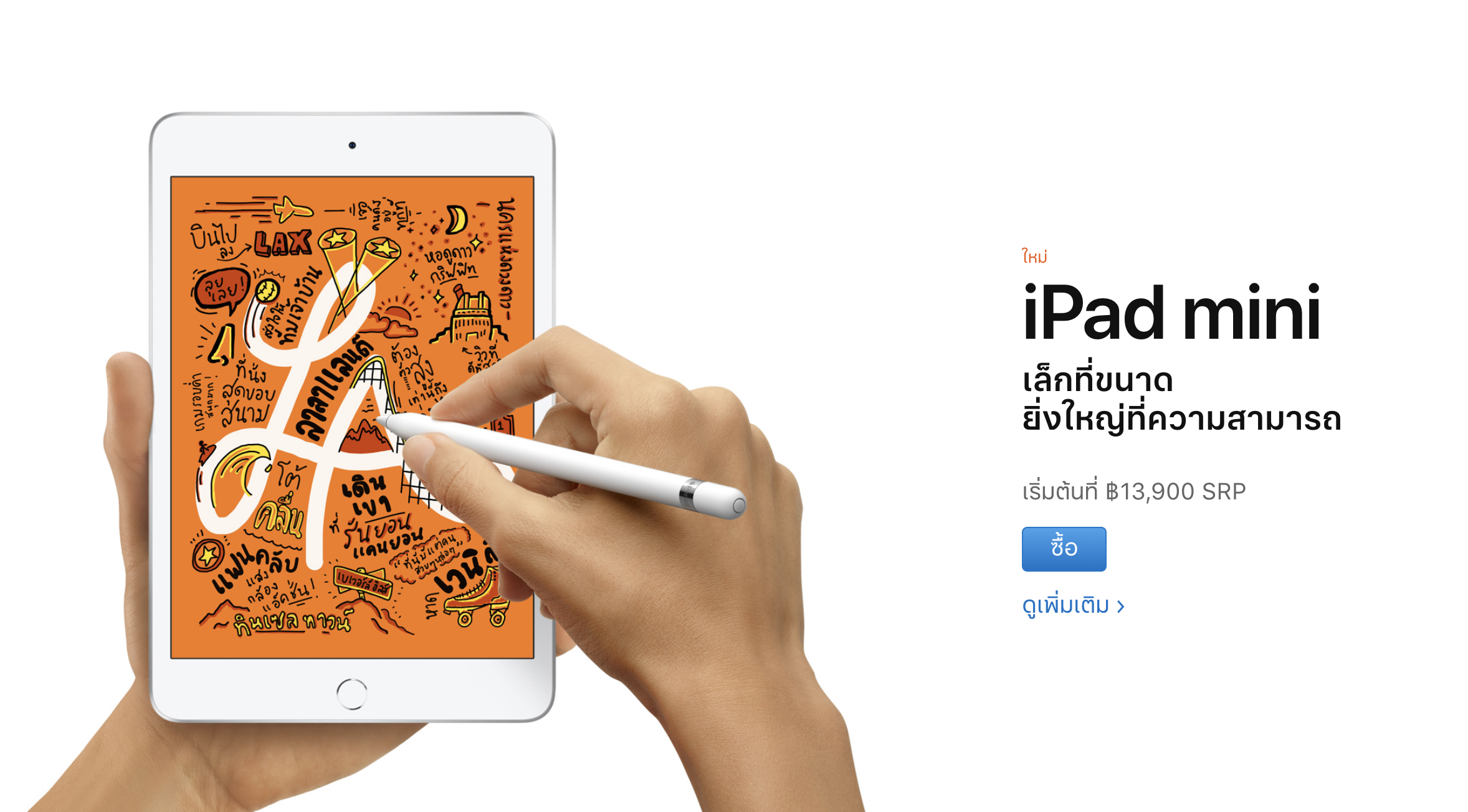 หลังจาก Apple เปิดตัว iPad Air และ iPad mini รุ่นใหม่ เมื่อวันที่ 18 มีนาคมที่ผ่านมา โดยทั้งคู่มากับชิปประมวลผล A12 Bionic พร้อม Neutral Engine และรองรับการใช้งานร่วมกับ Apple Pencil ล่าสุด Apple พร้อมวางจำหน่าย iPad Air และ iPad mini ในไทยแล้ว ตั้งแต่วันนี้เป็นต้นไป (เฉพาะเวอร์ชั่น Wi-Fi เท่านั้น) โดยมีราคาแตกต่างกันดังนี้