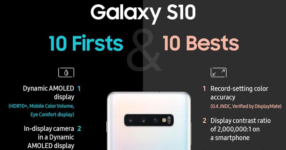 ผู้ใช้งานยังสามารถสร้างสรรค์คอนเทนต์ที่โดดเด่นสะดุดตาบน กาแลคซี่ เอส 10 ด้วยการบันทึกวิดีโอความละเอียดสูงแบบHDR10+ และฟีเจอร์ Super Steady เทคโนโลยีป้องกันภาพสั่นไหว ให้ภาพวิดีโอมีความสมูธและลื่นไหลกว่าที่เคย พร้อมรองรับเกมแบบ 64 บิต เป็นเจ้าแรกในตลาดอุปกรณ์ระบบปฏิบัติการแอนดรอยด์ และยังปรับปรุงพัฒนาให้รองรับเกมบนแพลตฟอร์มของ Unity ผนวกกับสุดยอดระบบเสียงจาก Dolby Atmos และหน่วยความจำภายในสูงสุด พร้อมระบบประมวลผลที่เร็วที่สุดในอุปกรณ์ตระกูลกาแลคซี่ ช่วยมอบประสบการณ์อันทรงพลังสำหรับผู้ใช้งานสมาร์ทโฟนในปัจจุบันโดยเฉพาะ จึงทำให้‘กาแลคซี่ เอส 10’ กลายเป็นอีกหนึ่งแก็ดเจ็ตจากซัมซุง ที่จะเข้ามาเปลี่ยนนิยามใหม่ของประสบการณ์บนสมาร์ทโฟนอย่างแท้จริง สามารถอ่านรายละเอียดเพิ่มเติมได้จากภาพอินโฟกราฟฟิก