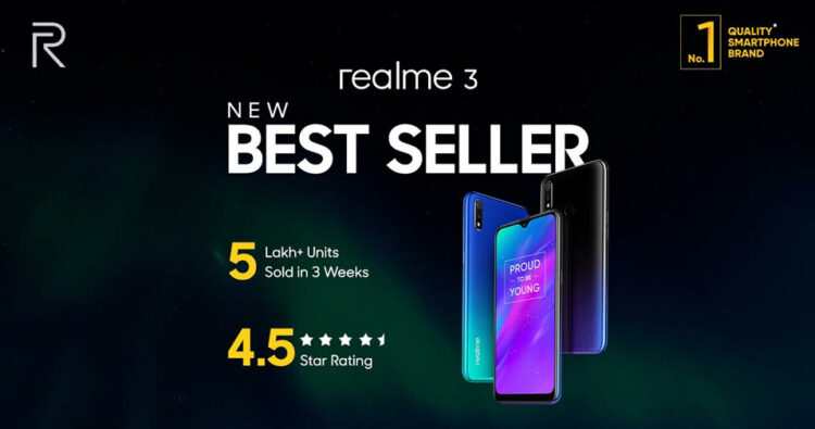 มาแรงจริงๆ สำหรับแบรนด์สมาร์ทโฟนน้องใหม่ Realme กับสมาร์ทโฟนรุ่นล่าสุด Realme 3 ที่เริ่มวางจำหน่ายในประเทศอินเดีย เมื่อวันที่ 12 มีนาคมที่ผ่านมา สามารถสร้างยอดขายได้ 210,000 เครื่อง ภายใน 1 สัปดาห์ และอีก 2 สัปดาห์ต่อมา ก็มียอดขายมากกว่า 500,000 เครื่อง