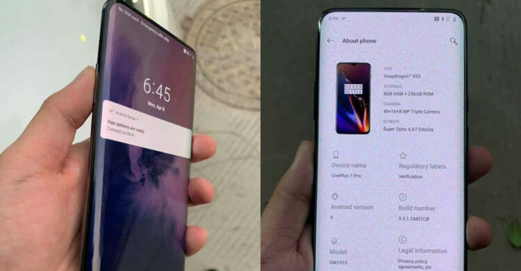นักฆ่าเรือธงรุ่นถัดไปจากค่าย OnePlus อาจไม่ได้มาเพียงรุ่นเดียว แต่จะเปิดตัวพร้อมกัน 3 รุ่น ได้แก่ OnePlus 7, OnePlus 7 Pro และ OnePlus 7 Pro 5G โดยรุ่น OnePlus 7 Pro มีภาพหลุดรั่วไหลออกมาแล้ว แสดงให้เห็นดีไซน์จอแสดงผลแบบขอบโค้ง ไร้กรอบ ไร้รอยบาก และนั่นหมายถึงอาจมีการซ่อนกล้องแบบป๊อปอัพไว้ที่ด้านบน