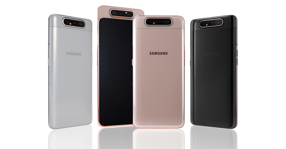 Samsung Galaxy A80 ได้รับการเปิดตัวอย่างทางการแล้ว มาพร้อมระบบกล้องป๊อปอัพที่สามารถพลิกหมุนได้ จึงเป็นได้ทั้งกล้องหลังและกล้องเซลฟี่ โดยประกอบไปด้วยกล้องหลัก 48 ล้านพิกเซล กล้องมุมกว้างพิเศษ 123 องศา และกล้อง 3D Depth ช่วยจับระยะชัดลึก