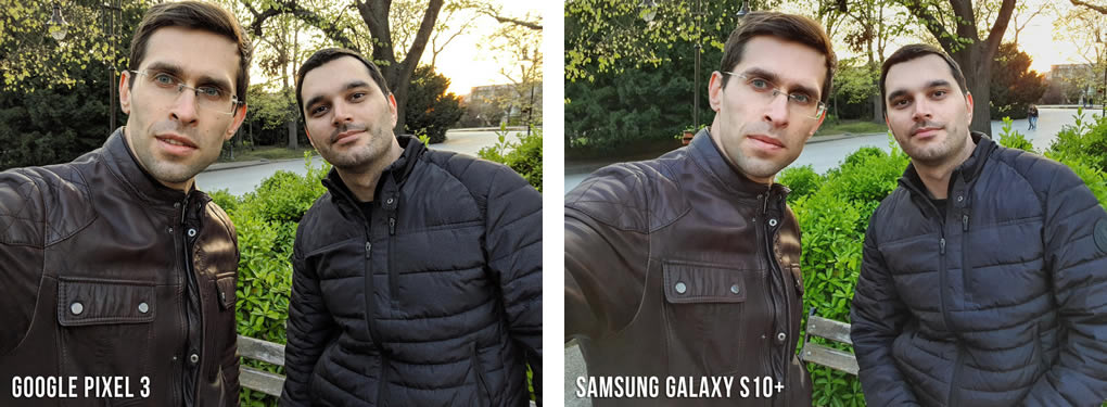 ถ่ายเซลฟี่แบบกลุ่ม โดยมี 2 คนในภาพเดียว ซึ่งหลายคนก็นิยมถ่ายภาพเซลฟี่ร่วมกับเพื่อนๆ และ Phonearena ตัดสินว่า Samsung Galaxy S10+ จะถ่ายภาพเซลฟี่แบบกลุ่มออกมาดีที่สุด ด้วยคะแนน 8 เต็ม 10