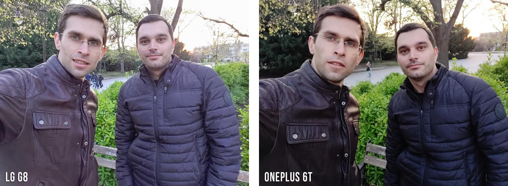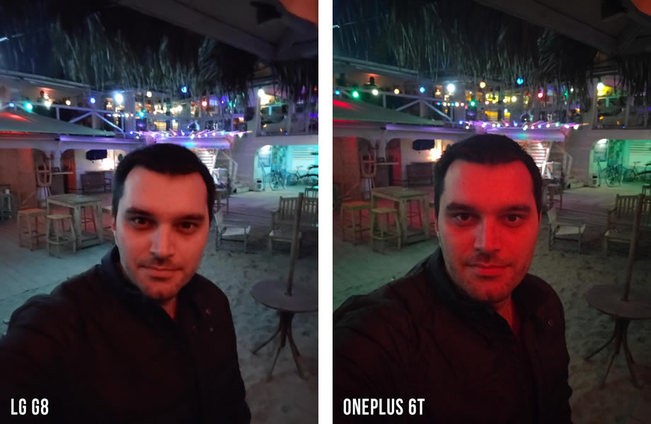 ยังเป็นการถ่ายเซลฟี่ในที่แสงน้อยหรือในเวลากลางคืน แต่ใช้แสงแฟลชช่วยเพิ่มความสว่าง และ OnePlus 6T ยังให้ผลลัพธ์ออกมาดีที่สุด ด้วยคะแนน 9 เต็ม 10
