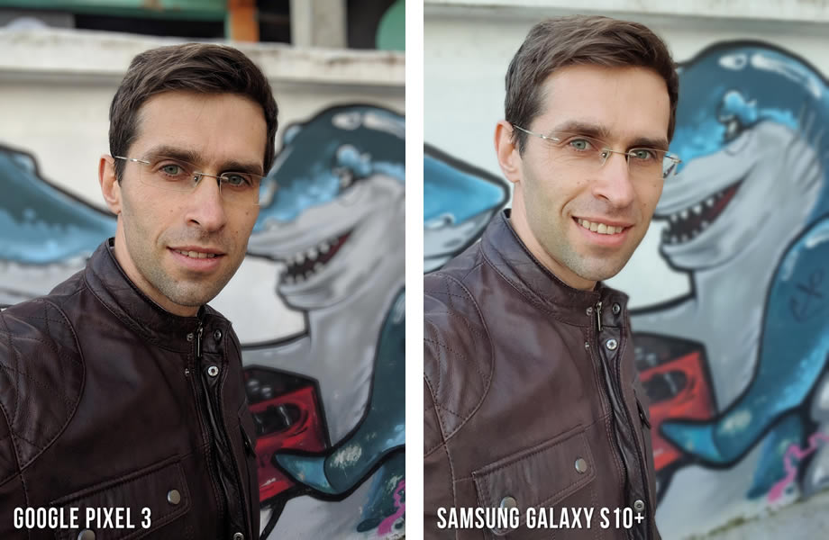 ถ่ายภาพเซลฟี่ในช่วงกลางวัน เป็นการถ่ายภาพทั่วไปในสภาพแสงปกติ และไม่มีการเปิดโหมด HDR จากนั้น Phonearena ได้นำภาพที่ได้มา Crop เพื่อพิจารณารายละเอียดอย่างถี่ถ้วน ก่อนจะเทคะแนนให้ Samsung Galaxy S10+ เป็นผู้ชนะในภาพนี้ ด้วยคะแนน 9 เต็ม 10