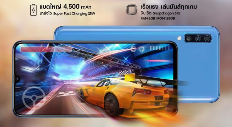 ซัมซุง กาแลคซี่ เอ 70 สมาร์ทโฟนสเปคเทพของเกมเมอร์ มาพร้อมประสิทธิภาพทรงพลัง ด้วยชิปประมวลผล Octa Core มอบประสบการณ์ความเร็วเต็มสปีดกับ RAM ขนาด 8GB ให้ทุกการใช้งานเร็วแรง ลื่นไหล ไม่สะดุด โดดเด่นด้วยหน้าจอ Infinity-U Display ขนาดใหญ่ถึง 6.7 นิ้ว ให้ผู้ใช้ดื่มด่ำกับประสบการณ์การรับชมได้แบบเต็มตา มาพร้อมกับแบตเตอรี่ขนาดใหญ่ถึง 4,500มิลลิแอมป์ ให้อิสระในการเชื่อมต่อได้อย่างเต็มที่ สามารถใช้งานได้ตลอดทั้งวัน ด้วยคุณสมบัติรองรับการชาร์จเร็วแบบ Super-Fast Charging ที่สูงถึง 25 วัตต์ พร้อมให้ผู้ใช้งานกลับมาสนุกกับกิจกรรมบนสมาร์ทโฟนได้เร็วขึ้นโดย ซัมซุง กาแลคซี่ เอ70 มีวางจำหน่ายในประเทศไทยทั้งหมด 3 สี ได้แก่ สีขาว สีดำ และสีน้ำเงิน ในราคา 15,990 บาท