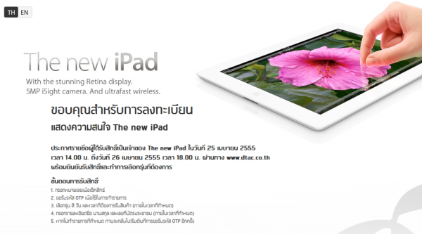 ลงทะเบียนได้ที่นี่ www.dtac.co.th/thenewipad/preregister/index.php