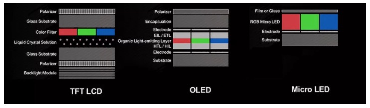 อย่างไรก็ตาม MicroLED มีความบางกว่า สว่างกว่า และ ประหยัดพลังงานมากกว่า OLED อีกทั้งยังมีอายุการใช้งานยาวนานกว่า และสารประกอบภายใน LED ยังทนทานต่อการเกิดปัญหา burn-in ด้วย