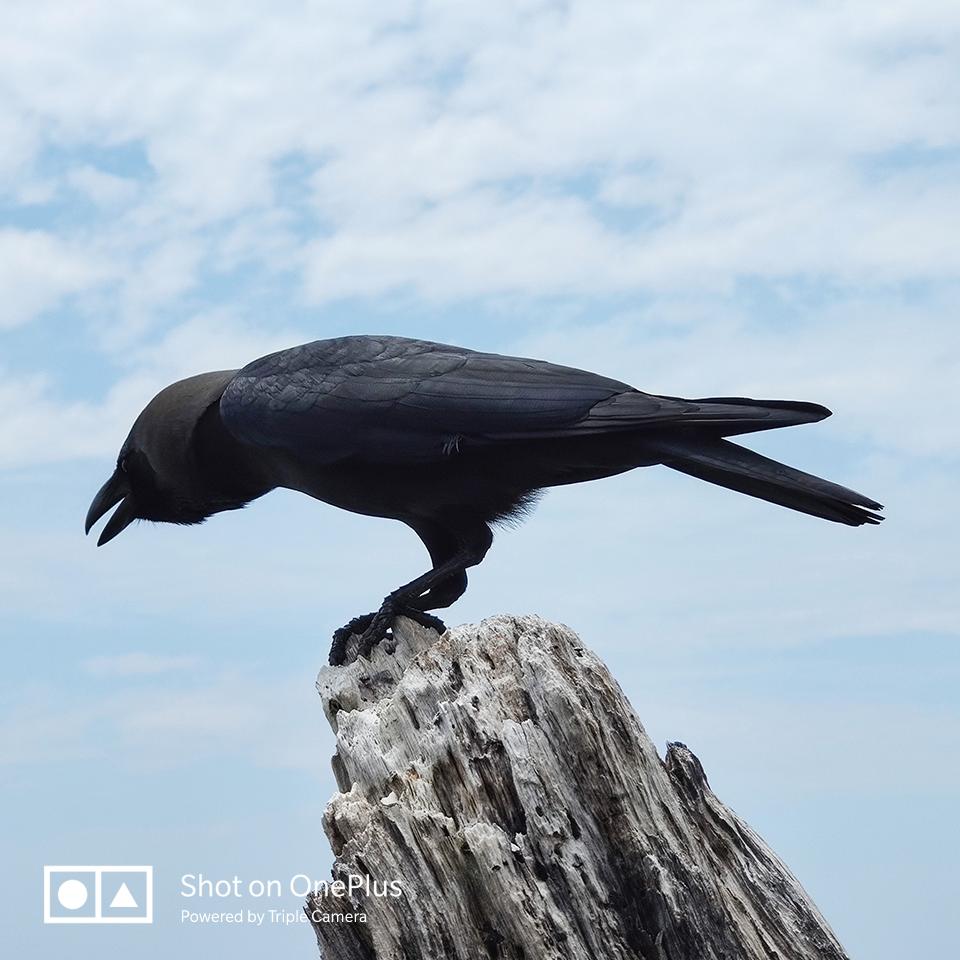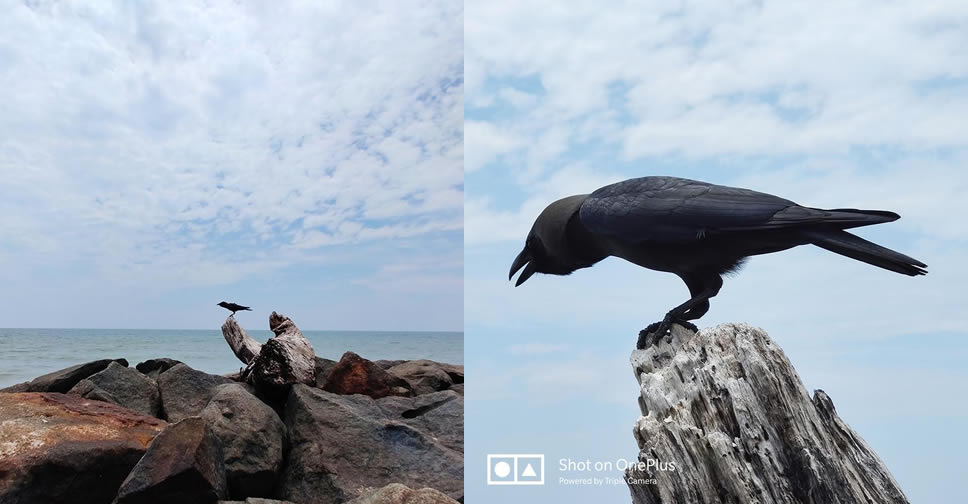 สำหรับภาพถ่ายจาก OnePlus 7 Pro ที่ถูกแชร์ผ่าน Twitter ของ OnePlus มีด้วยกัน 3 ภาพ แต่เป็นฉากเดียวกัน แสดงให้เห็นนกตัวหนึ่งเกาะบนซากไม้ที่ริมทะเล และซูมเข้าไปจนเห็นรายละเอียดของนกค่อนข้างชัดเจน