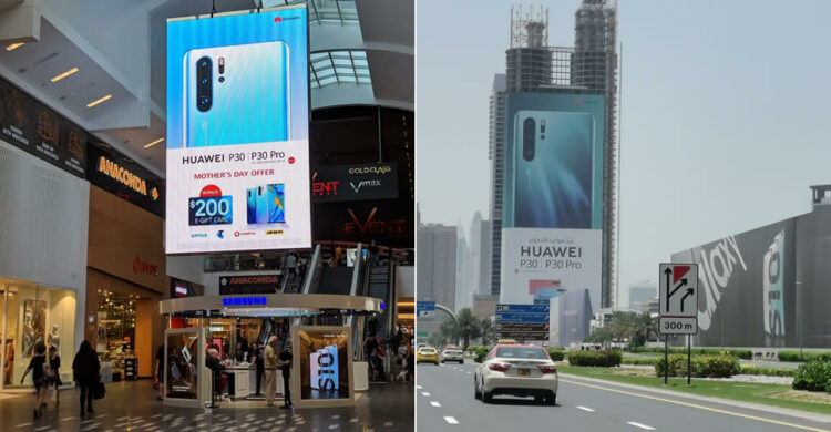 ไม่กี่วันก่อนหน้านี้ ยังมีการแชร์ภาพจากนครดูไบ ของสหรัฐอาหรับเอมิเรตส์ แสดงให้เห็นป้ายโฆษณาขนาดใหญ่ของ Huawei P30 series ตั้งอยู่ใกล้กับป้ายโฆษณา Samsung Galaxy S10 series จนดูเหมือนการแข่งขันระหว่าง 2 บริษัทจะรุนแรงขึ้นเรื่อยๆ