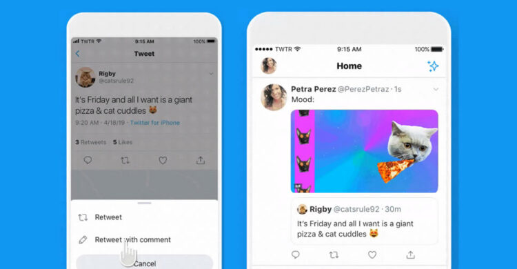 Twitter ประกาศเพิ่มฟีเจอร์ใหม่สำหรับการ Retweet โดยอนุญาตให้ผู้ใช้งานเพิ่มไฟล์รูปภาพ, ภาพเคลื่อนไหว GIFs หรือ วีดีโอ โดยฟีเจอร์ใหม่นี้สนับสนุนการใช้งานบนแอพพลิเคชั่นของอุปกรณ์ iOS และ Android รวมถึงเว็บไซต์สำหรับดูบนมือถือ