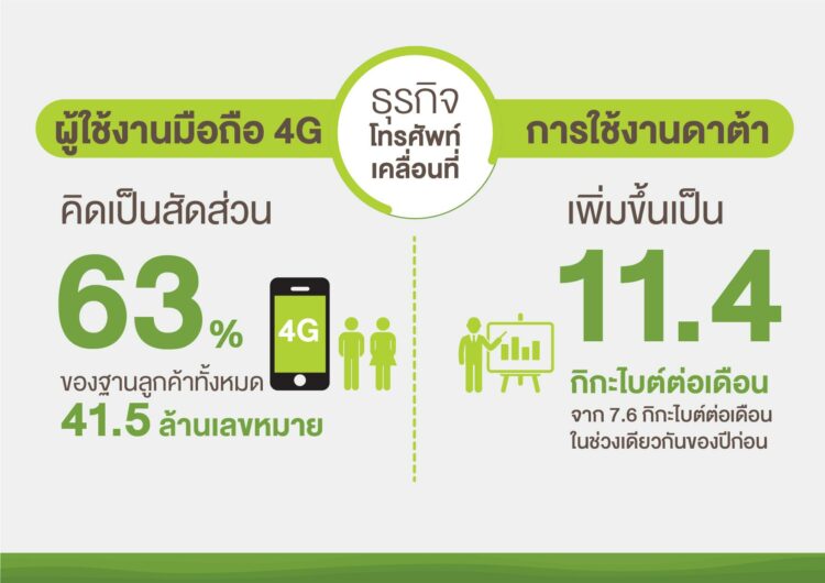 โดยความแข็งแกร่งของเอไอเอส สะท้อนมาถึงภาพรวมผลประกอบการไตรมาสแรกของปี 2562 ที่มีรายได้รวมเพิ่มขึ้น 7.1% จากช่วงเวลาเดียวกันของปีก่อน แต่ลดลง1.7% เทียบกับไตรมาสก่อน และมีกำไรสุทธิ 7,615 ล้านบาท ลดลง 5.3% เทียบกับช่วงเวลาเดียวกันของปีก่อน แต่เพิ่มขึ้นกว่า 11% เทียบกับไตรมาสก่อน และยังครองความเป็นผู้นำส่วนแบ่งการตลาดเชิงรายได้มากที่สุดในตลาดโทรศัพท์เคลื่อนที่กว่าร้อยละ 48ซึ่งในปัจจุบันเอไอเอสมีลูกค้า 4G เพิ่มขึ้นอย่างต่อเนื่อง คิดเป็นร้อยละ 63 ของฐานลูกค้าทั้งหมดกว่า 41.5 ล้านเลขหมาย และจากการพัฒนาคอนเทนต์ผ่านวิดีโอแพลตฟอร์มอย่าง AIS PLAY และ AIS PLAYBOX อย่างต่อเนื่อง ในฐานะผู้นำคอนเทนต์ความบันเทิงระดับโลกที่รู้จักกันดีอย่างซีรีส์ดัง Game of Thrones และการรับชม Live Concertศิลปินชื่อดังได้ทุกที่ ทุกเวลา ส่งผลให้การใช้งานดาต้าเพิ่มขึ้นต่อเนื่องเป็น 11.4 กิกะไบต์ จาก 7.6 กิกะไบต์ ในช่วงเวลาเดียวกันของปีก่อน