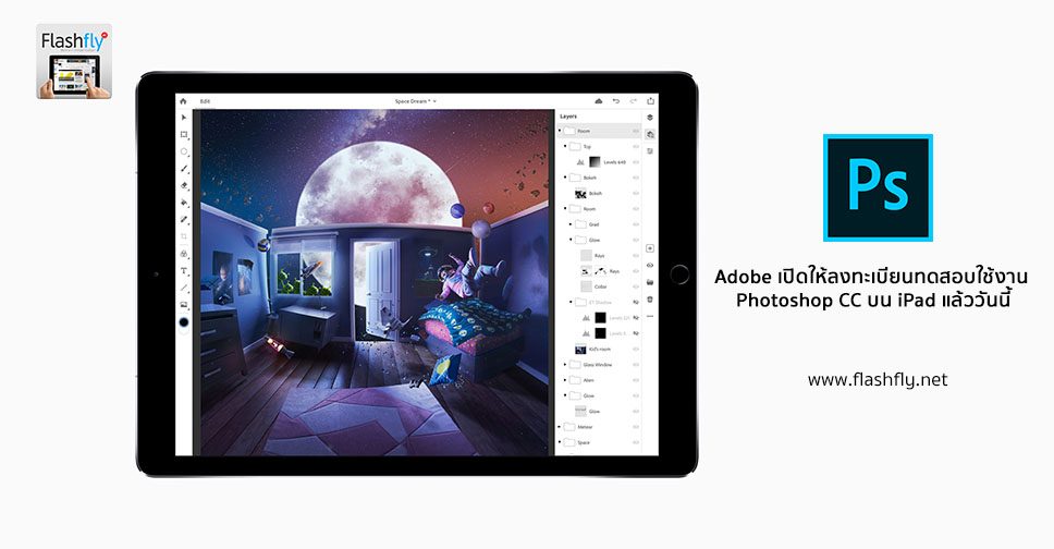 Adobe ยืนยันว่า Photoshop CC สำหรับ iPad สามารถเปิดและแก้ไขไฟล์ PSD บน iPad ได้ พร้อมเครื่องมือมาตรฐานที่สนับสนุน Layers พร้อมแถบเครื่องมือต่างๆ ที่ถอดแบบมาจากเวอร์ชั่น Desktop