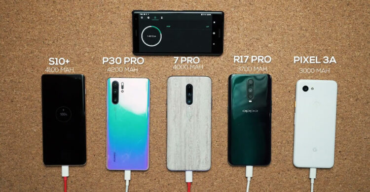 OPPO R17 Pro ชาร์จเต็มก่อน 100% ในเวลาประมาณ 40 นาที OnePlus 7 Pro ตามมาเป็นอันดับ 2 ชาร์จเต็ม 100% ในเวลาประมาณ 1 ชั่วโมง กับอีก 2 นาที และ 22 วินาทีต่อมา Huawei P30 Pro ก็ถูกชาร์จเต็ม Google Pixel 3a ชาร์จเต็ม 100% ในเวลา 1 ชั่วโมง กับอีก 33 นาที ใกล้เคียงกับที่ Samsung Galaxy S10+ ทำได้