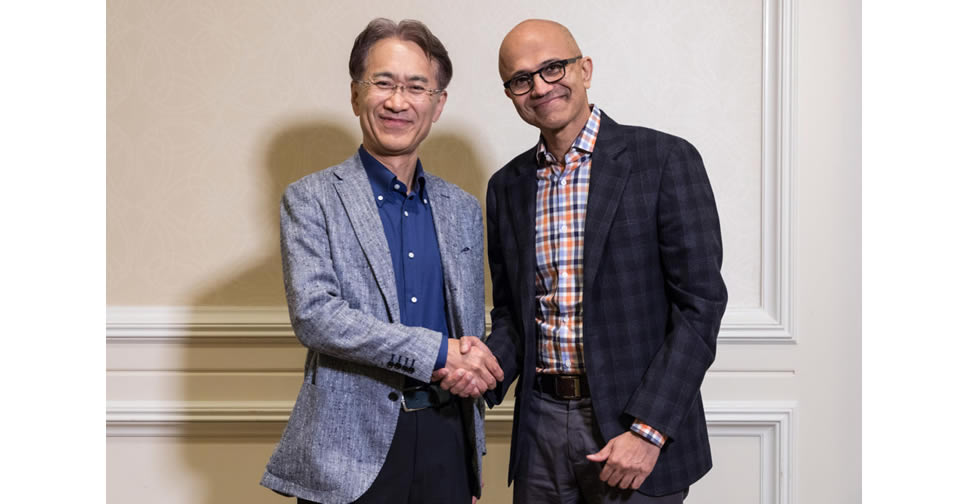 ไม่น่าเชื่อว่าเราจะได้เห็นภาพนี้ Kenichiro Yoshida ประธานและซีอีโอของ Sony Corporation จับมือกับ Satya Nadella ซีอีโอของ Microsoft หลังจากผู้บริหารทั้ง 2 บริษัทใหญ่บรรลุข้อตกลงเป็นพาร์ทเนอร์กัน เพื่อสร้างนวัตกรรมใหม่ที่จะยกระดับแพลตฟอร์มด้านความบันเทิง และ โซลูชั่น AI