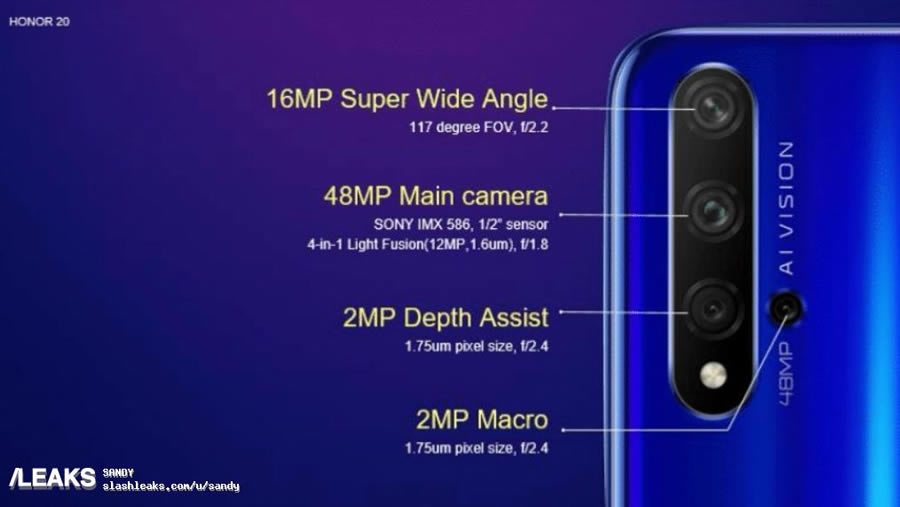 แหล่งปล่อยข่าวลือที่เชื่อถือได้ Bang Gogo ได้แชร์ภาพถ่ายจากสมาร์ทโฟน Honor 20 Pro ออกมาให้ชมแล้ว ผ่านทาง Twitter และ Instagram โดยมีข่าวลือว่า Honor 20 Pro จะมาพร้อมกล้องกลัองหลัง 4 ตัว ตัวหลัก 48 ล้านพิกเซล รูรับแสง F1.4 ซึ่งเป็นครั้งแรกของอุตสาหกรรมสมาร์ทโฟน