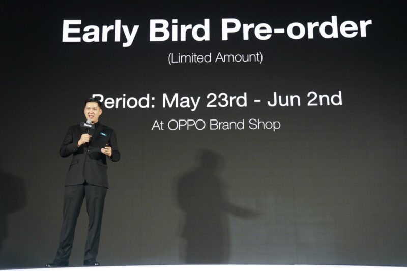 ภาพ : คุณชานนท์ จิรายุกุล รองประธานกรรมการฝ่ายบริหารออปโป้แห่งประเทศไทย กำลังกล่าวถึงการเปิดรับ Early Bird Pre-order ก่อนวันเปิดตัวอย่างเป็นทางการ