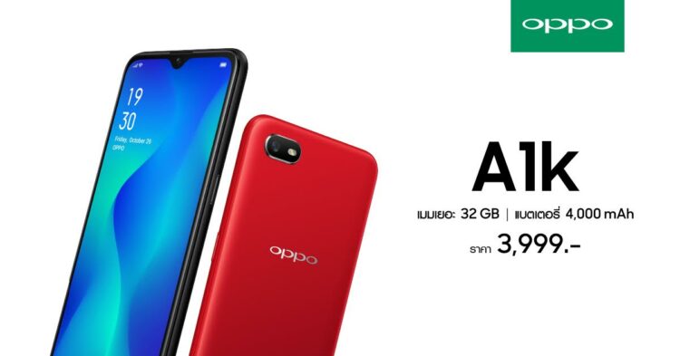 OPPO ประกาศเปิดตัวพร้อมวางจำหน่ายเป็นที่เรียบร้อยแล้วกับสมาร์ทโฟนรุ่นล่าสุด OPPO A1k สมาร์ทโฟนรุ่นเล็กที่มาพร้อม ROM 32GB และแบตเตอรี่ขนาด 4,000 mAh ที่สามารถใช้งานได้อย่างยาวนาน และดีไซน์หน้าจอหยดน้ำกว้างเต็มตา ซึ่งนับว่าได้รับความนิยมเป็นอย่างยิ่งในปีนี้