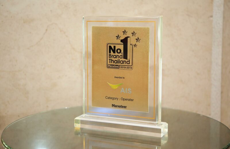 AIS โดย นางศิวลี บูรณสงคราม Head of AIS Brand Management ขึ้นรับรางวัลแบรนด์ยอดนิยมอันดับ 1 ของไทย No.1 Brand Thailand 2019 ด้าน Mobile Operator ซึ่งจัดขึ้นโดยนิตยสาร Marketeer เป็นการสำรวจความนิยมของผู้บริโภคชาวไทยที่มีต่อสินค้าและบริการประเภทต่างๆ จำนวน 4,000 ตัวอย่างทั่วประเทศ ผ่านเครื่องมือนวัตกรรมทางการวิจัย T-Cube Thailand ที่ครอบคลุมพฤติกรรมผู้บริโภคต่อผลิตภัณฑ์กว่า 120 หมวด สะท้อนพฤติกรรมของผู้บริโภคในฐานะผู้ใช้งานตัวจริงและจดจำแบรนด์ได้ ซึ่งดำเนินการสำรวจโดย Marketeer Research ร่วมกับ บริษัท วิดีโอ รีเสิร์จ อินเตอร์เนชั่นแนล (ประเทศไทย) จำกัด โดยมีนายอรรถพล ฤกษ์พิบูลย์ นายกสมาคมการตลาดแห่งประเทศไทย เป็นผู้มอบรางวัล และนายเพิ่มพล โพธิ์เพิ่มเหม บรรณาธิการบริหารและผู้ก่อตั้ง นิตยสาร Marketeer ร่วมแสดงความยินดีด้วย ณ โรงแรมสยามเคมปินสกี้ กรุงเทพฯ