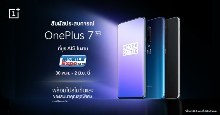 เมื่อไม่นานมานี้แบรนด์สมาร์ทโฟนสุดพรีเมี่ยมอันดับ 5 ของโลกอย่างOnePlus ได้เปิดตัวสมาร์ทโฟน Super Flagship รุ่นใหม่ OnePlus 7 Pro ในประเทศไทยอย่างเป็นทางการ พร้อมกับเสียงตอบรับอย่างดีเยี่ยม ล่าสุดทาง OnePlus ประเทศไทยได้เข้าร่วมงาน Thailand Mobile Expo 2019 ที่ไบเทค บางนา ซึ่งจะจัดขึ้นในบูธ AIS พร้อมให้คุณสัมผัสทดลองและจับจองเป็นเจ้าของได้ในราคาสุดพิเศษกว่าใครกับโปรโมชั่นแพ็กเกจรายเดือนHot Deal ของ AIS บนเครือข่าย NEXTG เร็วแรง สูงสุดถึงระดับ Gbps รับส่วนลดค่าเครื่องสูงสุดถึง 5,000 บาท พร้อมรับของสมนาคุณบัตร OnePlus 7 Pro VIP Card ประกันหน้าจอแตกนาน 1 ปีต่อการเคลมใช้สิทธิ์ 1 ครั้ง มูลค่า 9,000 บาท ได้ที่งาน Thailand Mobile Expo 2019 ในวันที่ 30พฤษภาคม – 2 มิถุนายน 2562 โดยสินค้าและของสมนาคุณภายในงานมีจำนวนจำกัด
