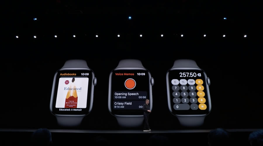 watchOS 6 ยังมาพร้อมกับแอพพลิเคชั่นใหม่อย่าง Audiobook, Calculator, Voice Memos ควบคู่กับการปรังปรุงซอฟต์แวร์ใหม่ที่นำเสนอตัวเลือการแจ้งเตือนแบบ Taptic Chimes