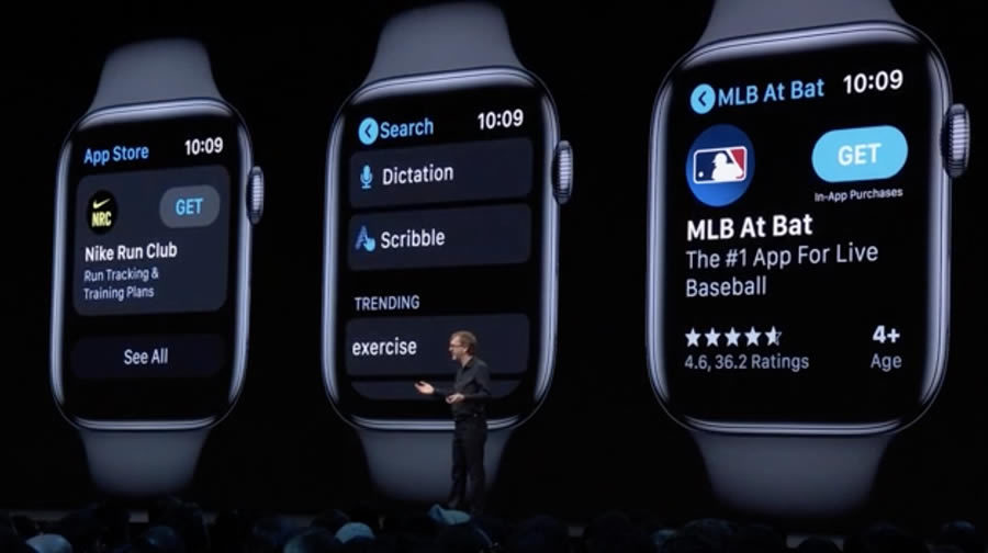watchOS 6 มาพร้อม App Store ของตัวเอง ช่วยให้ผู้ใช้งานค้นหาและดาวน์โหลดแอพพลิเคชั่นสำหรับ Apple Watch ได้โดยตรงจากข้อมือ และช่วยให้ Apple Watch เป็นอิสระจาก iPhone มากขึ้น