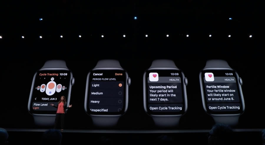 ฟีเจอร์ด้านสุขภาพของ watchOS 6 ก็ได้รับการปรับปรุงด้วยเช่นกัน ช่วยให้เจ้าของ Apple Watch เปรียบเทียบข้อมูลการติดตามกิจกรรมในแต่ละวัน และเพิ่มการติดตามรอบประจำเดือนทั้งใน Apple Watch และ iPhone