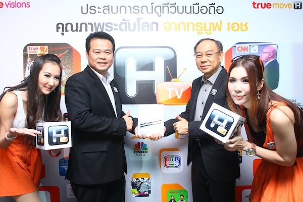 ทรูมูฟ เอช โดย นายอติรุฒม์ โตทวีแสนสุข (ซ้าย) ผู้อำนวยการบริหาร ธุรกิจโมบายล์ บริษัท ทรู คอร์ปอเรชั่น จำกัด (มหาชน) ผนึกกำลัง ทรูวิชั่นส์ โดย นายอาณัติ เมฆไพบูลย์วัฒนา (ขวา) กรรมการผู้จัดการ บมจ. ทรูวิชั่นส์ เปิดตัว “H TV” ยกระดับประสบการณ์การดูทีวีบนมือถือรูปแบบใหม่ เพิ่มอิสระการรับชมรายการโปรดได้ทุกที่ทุกเวลา ชูจุดเด่น คอนเทนต์ระดับโลกจากทรูวิชั่นส์และช่องอื่นๆ กว่า 90 ช่อง พร้อมรับชมภาพคมชัดระดับ เอชดี ผ่านทรูมูฟ เอช 3G+ บนเครือข่ายคุณภาพที่เร็วและแรงกว่า ครอบคลุมพื้นที่มากที่สุดในไทย ส่งโปรโมชั่นพิเศษสำหรับลูกค้าทรูมูฟ เอช ดาวน์โหลด H TV ผ่านแอพสโตร์ ฟรี ตั้งแต่ 26 เมษายน เป็นต้นไป รับสิทธิยกเว้นค่าบริการรายเดือน 399 บาท นาน 12 เดือน นับแต่วันลงทะเบียนครั้งแรก