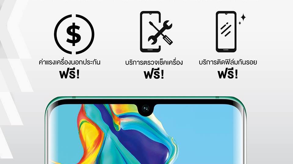 Huawei ให้ลูกค้าตรวจเช็คเครื่องฟรี ส่งซ่อมโดยไม่มีค่าบริการ และติดฟิล์มกันรอยฟรี ในวันที่ 6 ถึง 8 มิถุนายน 2562 เท่านั้น