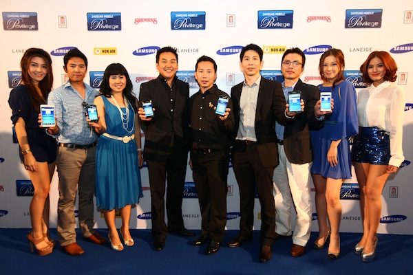 ล่าสุดซัมซุงจับมือ4 พันธมิตรสุดฮิต แบรนด์ที่มีความหลากหลายทั้งในด้านความบันเทิงและบริการ ประกอบด้วย ร้านไอศกรีมสเวนเซ่นส์ (Swensen’s) รับไอศครีมรสใดก็ได้ฟรี 1 สกู๊ป เมื่อสั่งเมนูใดก็ได้ที่สเวนเซ่นส์ทุกสาขา สายการบินนกแอร์ (Nok Air) ซื้อตั๋วเครื่องบินภายในประเทศด้วยราคาโปรโมชันพิเศษเริ่มต้นเพียง 1,290 บาท โรงภาพยนตร์เมเจอร์ ซีนีเพล็กซ์ (Major Cineplex) รับส่วนลดค่าบัตรชมภาพยนตร์ทุกเรื่อง ทุกรอบ ทุกระบบ50 บาทต่อที่นั่ง เครื่องสำอางค์ลาเนจ (LANEIGE) มอบสิทธิพิเศษ 2 ต่อ ต่อที่ 1 รับผลิตภัณฑ์บำรุงผิวหน้ามูลค่า 300 บาทฟรีและต่อที่ 2 รับส่วนลดทันที 15% เมื่อซื้อผลิตภัณฑ์บำรุงผิวหน้าชนิดใดก็ได้ โดยผู้สนใจรับสิทธิพิเศษ จากโปรแกรมซัมซุง โมบายล์ พริวิลเลจต้องเข้าไปลงทะเบียนครั้งแรกที่ http://www.samsung.com/th/privilege ตั้งแต่วันนี้เป็นต้นไป