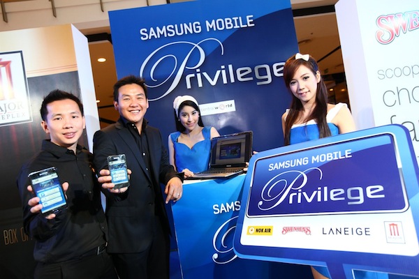 นายวิชัย พรพระตั้ง รองประธานธุรกิจโทรคมนาคม บริษัท ไทยซัมซุง อิเลคโทรนิคส์ จำกัด กล่าวว่า “หลังจากที่ซัมซุงได้บุกตลาดสมาร์ทโฟนตลอดระยะเวลาที่ผ่านมา ด้วยการแนะนำสมาร์ทโฟนตระกูลกาแล็คซี่หลากหลายรุ่น ตั้งแต่รุ่นเอนทรีขวัญใจวัยรุ่นอย่าง ‘ซัมซุง กาแล็คซี่ วาย (Samsung Galaxy Y)’ ไปจนถึงรุ่นไฮเอนด์อย่าง ‘ซัมซุง กาแล็คซี่ เอส ทู (Samsung Galaxy S II)’ หรือ ‘ซัมซุง กาแล็คซี่ โน้ต (Samsung Galaxy Note)’ เพื่อตอบรับไลฟ์สไตล์ของผู้บริโภคทุกกลุ่ม พร้อมทั้งช่วยให้ชีวิตสมาร์ท สะดวกสบายและเชื่อมต่อกันมากขึ้น จนทำให้สมาร์ทโฟนตระกูลกาแล็คซี่จากซัมซุงทุกรุ่นได้รับกระแสตอบรับอย่างล้นหลาม เพื่อเป็นการฉลองความสำเร็จและ ตอบแทนผู้บริโภคที่ให้การสนับสนุนมาโดยตลอด ซัมซุงจึงได้นำเสนอ “ซัมซุง โมบายล์ พริวิลเลจ (Samsung Mobile Privilege)” โปรแกรมพริวิลเลจที่มอบสิทธิประโยชน์ให้แก่ผู้ใช้ซัมซุง กาแล็คซี่ สมาร์ทโฟนที่ใช้ระบบปฏิบัติการแอนดรอยท์ทุกรุ่น โดยรวบรวมความพิเศษจากหลากหลายแบรนด์และร้านค้าชื่อดังที่ซัมซุงได้คัดสรรมาเป็นอย่างดี เพื่อตอบรับความต้องการของทุกๆ ไลฟ์สไตล์”