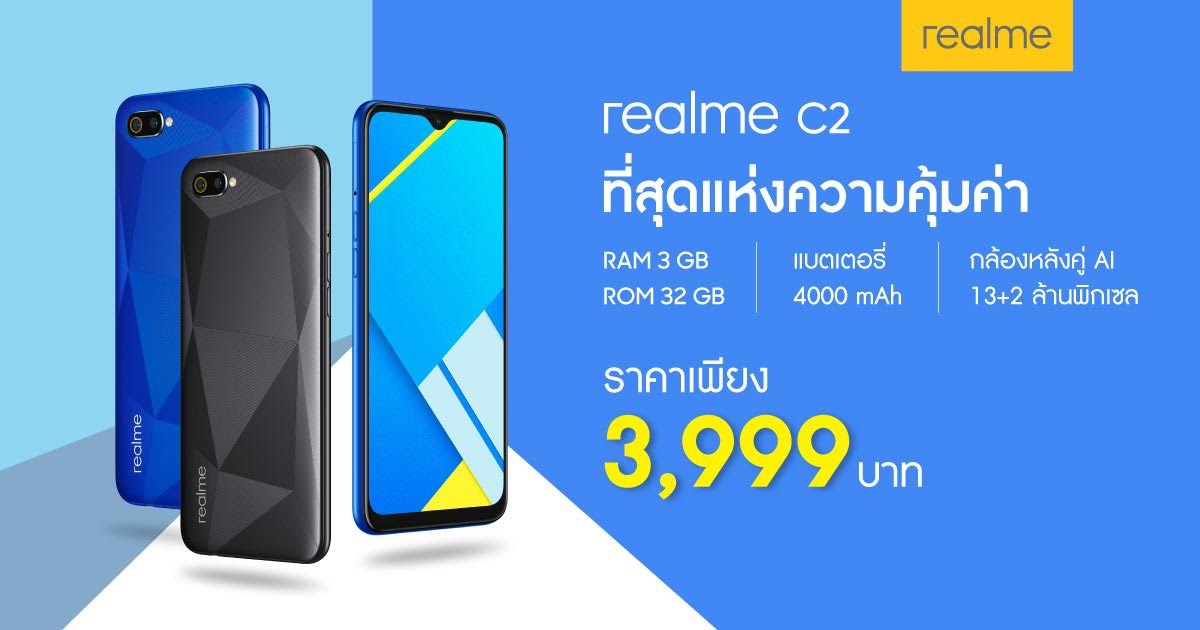 realme เปิดตัวสมาร์ทโฟนรุ่นใหม่ “ที่สุดแห่งความคุ้มค่า” realme C2 ในไทยทางการ 3,999 บาท วางจำหน่าย 15 มิถุนายนนี้
