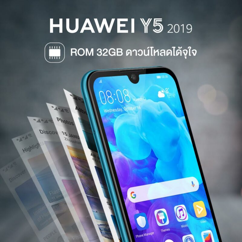 HUAWEI Y5 2019 กับความจุจัดเต็มด้วย RAM 2 GB และ ROM 32 GB รองรับการเพิ่ม Micro SD Card ได้สูงสุดถึง512 GB พร้อมแบตเตอรี่อึดถึง 3020 mAh ทำงานควบคู่กับระบบ AI ผู้ช่วยอัจฉริยะ ในการ                จัดการพลังงาน พร้อมเพลิดเพลินกับประสบการณ์การฟังเพลงสุดยอดเยี่ยมผ่านเทคโนโลยี HUAWEI Histen ระบบเสียงรอบทิศทางแบบ Histen 3D