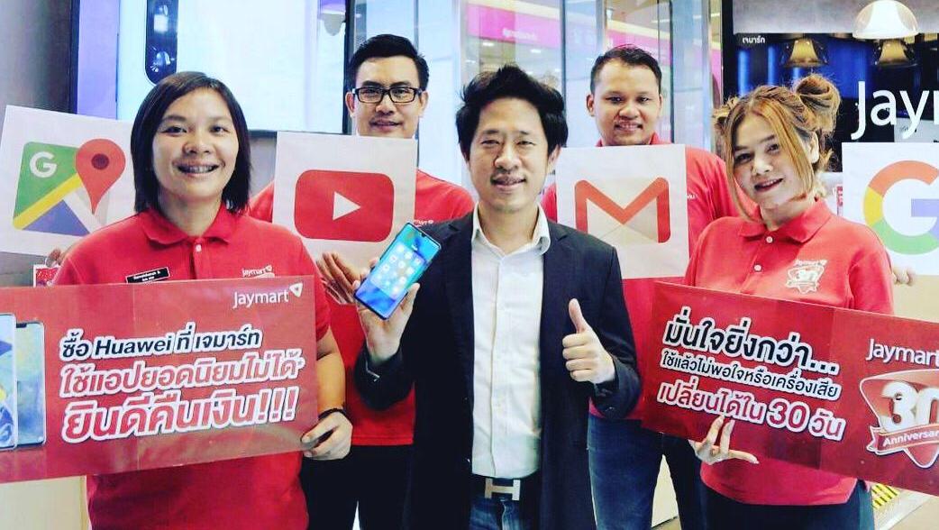 ผู้บริโภคไทยยังคงมั่นใจในสมาร์ทโฟนและแท็บเล็ตหัวเว่ย หลังจากที่ผู้จัดจำหน่ายของหัวเว่ยรายใหญ่ในไทยทั้ง 5 ราย (ซินเน็ค เจมาร์ท ทีจีโฟน ซีเอสซี และบานาน่า) ประกาศแผนประกันคืนเงินเต็มจำนวนให้แก่ลูกค้าไทย หากพบปัญหาการใช้งานหรืออัพเดตแอปพลิเคชั่นยอดนิยมจากกูเกิลและเฟสบุ๊ค โดยหลังจากที่ได้ประกาศเงื่อนไขการรับประกันออกไปเมื่อสัปดาห์ที่ผ่านมา พบว่าบรรยากาศหน้าร้านค้าของผู้จัดจำหน่ายหลายสาขาทั่วไทยต่างก็มีความคึกคักขึ้นอย่างชัดเจนตลอดช่วงสุดสัปดาห์ เนื่องจากลูกค้าส่วนใหญ่มองว่านโยบายประกันดังกล่าวช่วยเพิ่มความมั่นใจและทำให้ตัดสินใจซื้อได้ง่ายขึ้น