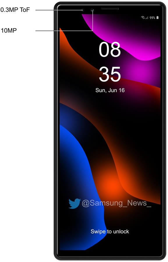 Max J. เจ้าของบัญชี Twitter @Samsung_News_ อ้างว่า สมาร์ทโฟน Xperia ในอนาคตของ Sony จะมาพร้อมกล้องหน้า 10 ล้านพิกเซล ว่งคู่กับเซ็นเซอร์ ToF (Time-of-Flight) ซึ่งเป็นเซ็นเซอร์ 3D ช่วยในการถ่ายภาพหน้าชัดหลังเบลอ รวมถึงมีประโยชน์ในการจดจำใบหน้า