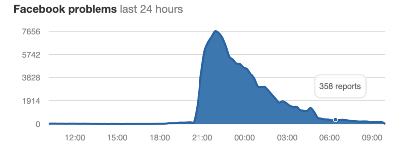 ตั้งแต่ช่วงเวลาประมาณ 21:00 น. ตามเวลาในประเทศไทยเว็บไซต์ชื่อดัง Facebook เกิดเหตุขัดข้องไม่สามารถใช้งานได้ตามปกติ ส่งผลให้ผู้ใช้งานจำนวนมากในหลายประเทศทั่วโลกไม่สามารถอัพโหลดรูปภาพ หรือแสดงรูปภาพและวิดิโอ ได้ และยังส่งผลให้ผู้ใช้งานไม่สามารถส่งรูปภาพ หรือไฟล์ผ่าน Instagram รวมถึงแอพแชต Facebook Messenger และ WhatsApp ได้