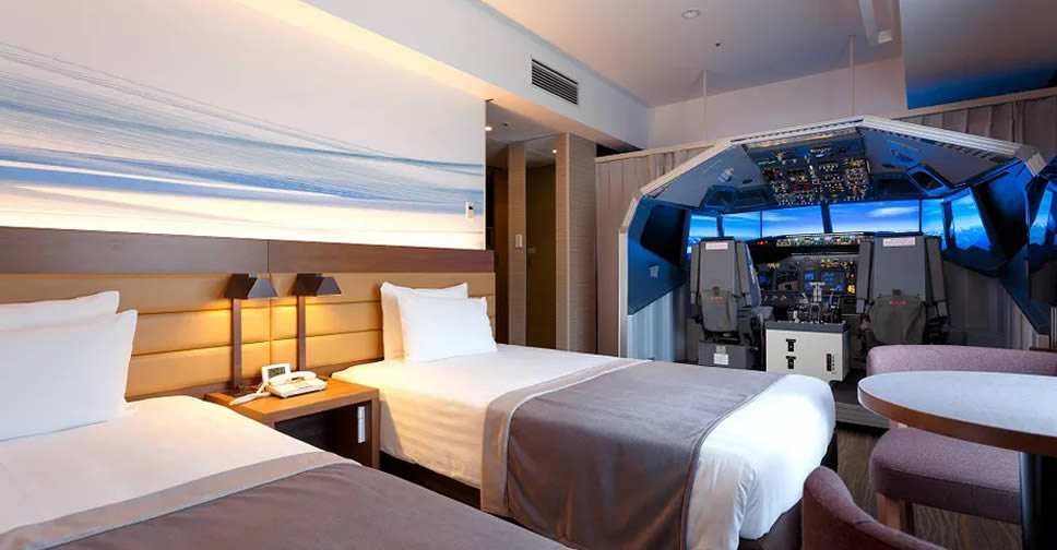 โรงแรม Haneda Excel Hotel Tokyu ตั้งอยู่ติดกับสนามบิน Haneda International Airport ของโตเกียว และเชื่อมต่อถึงกันเพื่อความสะดวกของนักเดินทาง จึงเป็นที่มาของไอเดียสร้างห้องจำลองของนักบินไว้ในห้องพัก