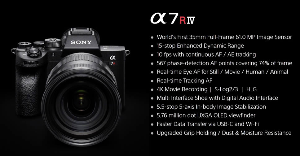 Sony เปิดตัวกล้อง Mirrorless Full Frame รุ่นแรกของโลก ที่มีความละเอียด 61 ล้านพิกเซล มีชื่อรุ่นว่า α7R IV สามารถถ่ายภาพต่อเนื่องได้สูงสุด 10 เฟรมต่อวินาที และให้ช่วงไดนามิกถึง 15 สต็อป