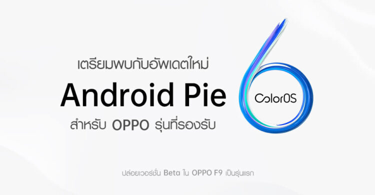 OPPO ประกาศปล่อย ColorOS 6 เวอร์ชั่น Beta สำหรับสมาร์ทโฟน OPPO F9 โดย ColorOS 6 เวอร์ชั่น Beta ใหม่นี้ จะมอบประสบการณ์การใช้งานของระบบปฏิบัติการมือถือ Android Pie ใหม่ล่าสุดให้แก่ผู้ใช้งาน พร้อมฟีเจอร์ที่ได้รับการปรับแต่งใหม่ทั้งหมด