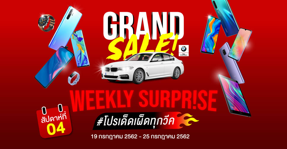 หลังจากเปิดตัวแคมเปญโปรโมชั่นครั้งใหญ่แห่งปี HUAWEI Grand Sale 2019 ไปในช่วงปลายเดือนมิถุนายนที่ผ่านมา ซึ่งนอกจากลูกค้าจะได้รับสิทธิ์ลุ้นเป็นเจ้าของ “BMW 520d M sport” รถยนต์สุดหรู มูลค่ากว่า 3.5 ล้านบาท แล้ว ยังสามารถซื้อสินค้าโดยการผ่อน 0% นานถึง 6 เดือนอีกด้วย โดยแต่ละสัปดาห์ลูกค้าจะพบกับราคาพิเศษสุดเซอร์ไพรส์ใน “โปรเด็ด เผ็ดทุควีค” ที่มาพร้อมกับของแถมสุดคุ้มอีกหลายรายการอีกด้วย