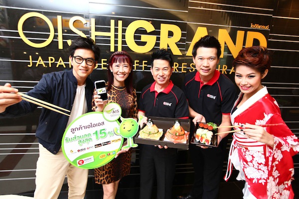 สาวกเจแปนนิสฟู๊ดเตรียมเฮ! เมื่อเอไอเอส โดย คุณวิลาสินี พุทธิการันต์ รองกรรมการผู้อำนวยการ สายงานบริการลูกค้าและการบริการ ร่วมกับ คุณไพศาล อ่าวสถาพร รองกรรมการผู้จัดการ สายงานธุรกิจอาหาร บริษัท โออิชิ กรุ๊ป จำกัด (มหาชน) สร้างสรรค์ความคุ้มค่าในความอิ่มหนำสำราญ จากมาตรฐานบริการของร้านอาหารญี่ปุ่นชั้นนำ ทั้ง โออิชิ แกรนด์, โออิชิ บุฟเฟต์, ชาบูชิ บุฟเฟต์, นิกุยะ เจแปนนิส บาร์บีคิว บุฟเฟต์, โออิชิ ราเมน และ คะโซคุเต (ร้านอุด้งและโซบะยอดนิยมของโอซาก้า) ร่วม 130 สาขาทั่วประเทศ พิเศษสำหรับลูกค้าเอไอเอส สุดคุ้ม! ทุกวันกับส่วนลด 10%และสุดคุ้มขึ้นไปอีก! ระหว่างเวลา 14.00 – 16.00 น. ทุกวันจันทร์-ศุกร์ กับส่วนลดพิเศษ 15%