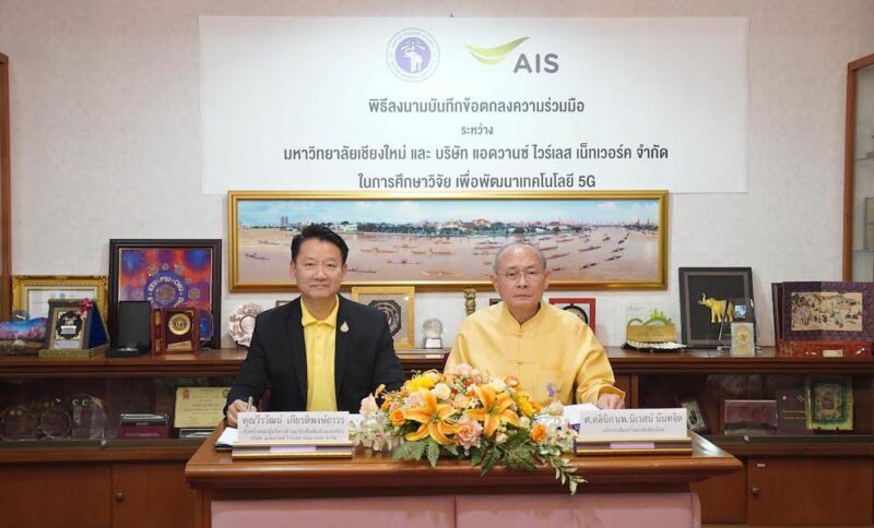 เอไอเอส โดยนายวีรวัฒน์ เกียรติพงษ์ถาวร หัวหน้าคณะผู้บริหารด้านธุรกิจสัมพันธ์และองค์กร บริษัท แอดวานซ์ ไวร์เลส เน็ทเวอร์ค จำกัด ในเครือเอไอเอส และ มหาวิทยาลัยเชียงใหม่ โดย ศาสตราจารย์คลินิก นายแพทย์ นิเวศน์ นันทจิต อธิการบดีมหาวิทยาลัยเชียงใหม่ ร่วมพิธีลงนามบันทึกข้อตกลงความร่วมมือในการศึกษา วิจัย ทดลอง ทดสอบ เพื่อพัฒนาเทคโนโลยี 5G ที่กำลังจะมาถึง เพื่อสร้างองค์ความรู้ทางวิชาการและบ่มเพาะบุคลากรด้านเทคโนโลยีดิจิทัล ซึ่งจะเป็นปัจจัยพื้นฐานสำคัญในการขับเคลื่อนภาคเหนือและประเทศไทยเข้าสู่ยุคดิจิทัลอย่างเต็มรูปแบบ