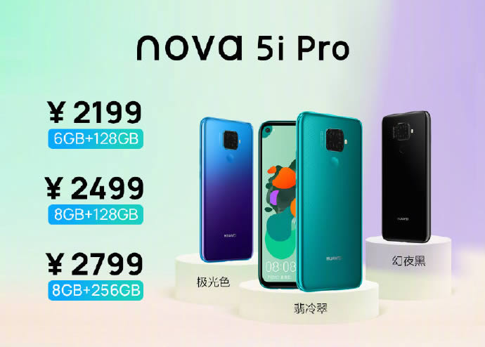 Huawei Nova 5i Pro จะเริ่มวางจำหน่ายในประเทศจีน วันที่ 2 สิงหาคมนี้ โดยมี 3 ตัวเลือก คือ RAM 6GB + ROM 128GB ราคา 2,199 หยวน หรือราว 9,890 บาท, RAM 8GB + ROM 128GB ราคา 2,499 หยวน หรือราว 11,240 บาท และ RAM 8GB + ROM 256GB ราคา 2,799 หยวน หรือราว 12,590 บาท