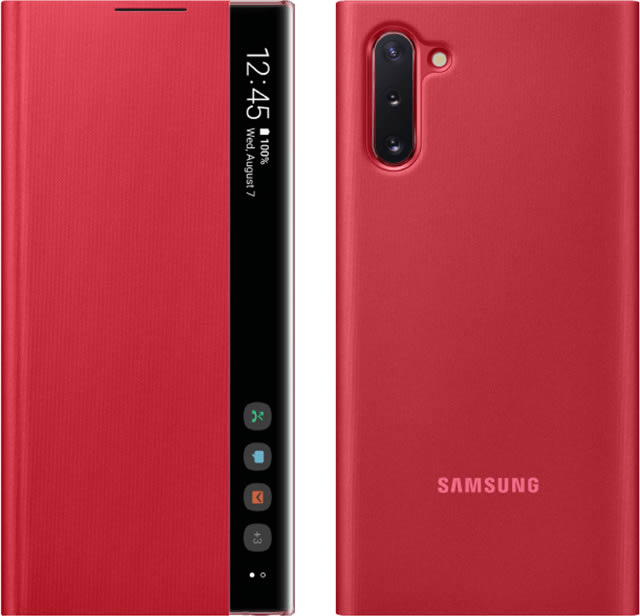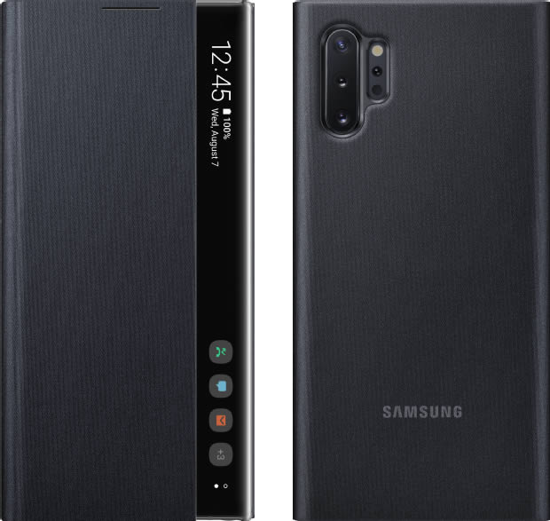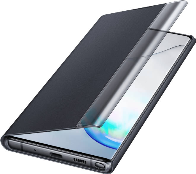 เว็บไซต์ WinFuture ปล่อยภาพเคสทางการของ Samsung Galaxy Note 10 และ Galaxy Note 10+ ออกมาแล้ว โดยเคสแบบ View Cover จะมีฝาปิดด้านหน้าจอ ซึ่งบางส่วนของฝาถูกทำให้โปร่งแสง สามารถมองเห็นหน้าจอโดยไม่ต้องเปิดฝาเคส
