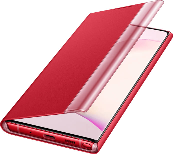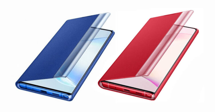 ภาพเรนเดอร์ View Cover ยังเป็นการยืนยันว่า Galaxy Note 10+ จะมีบอดี้สีน้ำเงิน Aura Blue และ Galaxy Note 10 จะมีบอดี้แดง Aura Red