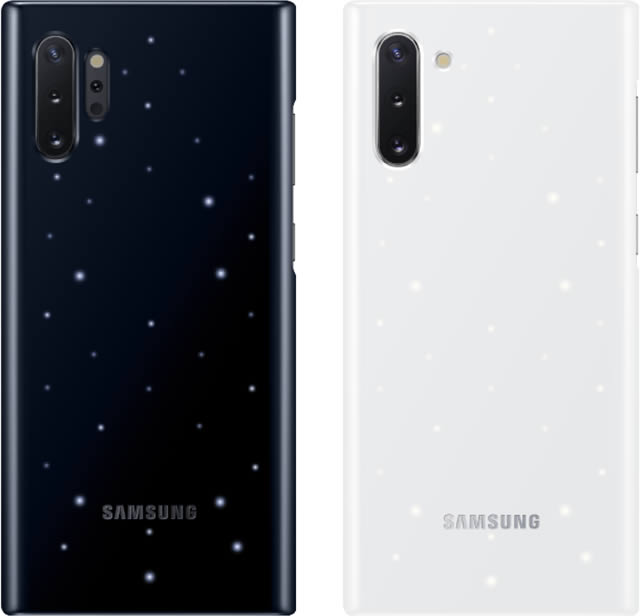 Galaxy Note 10 series ยังมีเคสแบบ LED Cover ให้เลือกด้วย ซึ่งด้านหลังเคสจะส่องแสงเหมือนดวงดาวยามค่ำคืน เมื่อมีสายเรียกเข้า หรือได้รับการแจ้งเตือน นอกจากนี้ยังมีเคสแบบ Silicone Cover และ Leather Cover